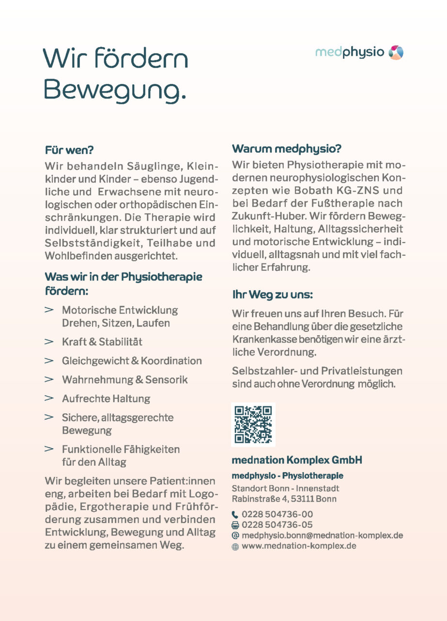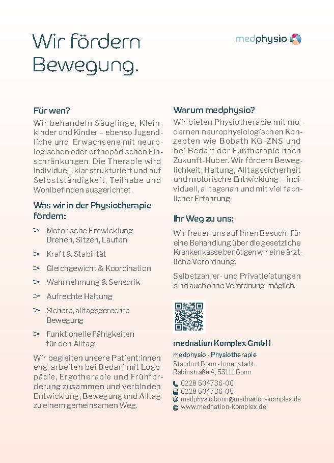 Physiotherapie für Säuglinge, Kleinkinder und Kinder – ebenso Jugendliche und Erwachsene mit neurologischen oder orthopädischen Einschränkungen.